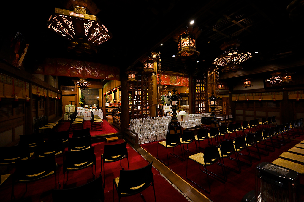 本堂はすべて椅子席で、お施主様・お連れ様を含め、各座とも約100名までお上がりいただけます。